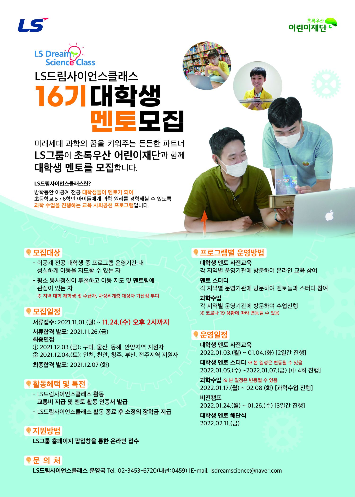 LS드림사이언스클래스 16 대학생 멘토 모집에 많은 관심과 참여 부탁 드립니다. :)