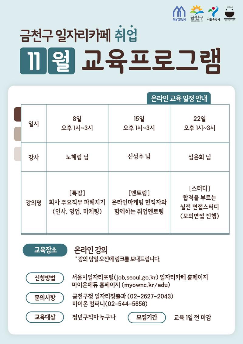 👉 문의사항: 1) 금천구청 일자리창출과 02-2627-2043 2) 마이온 컴퍼니 02-544-5656