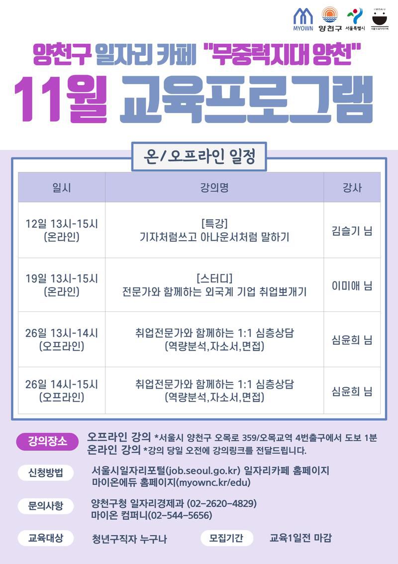 👉 문의사항: 1) 양천구청 일자리경제과 02-2620-4829 2) 마이온 컴퍼니 02-544-5656