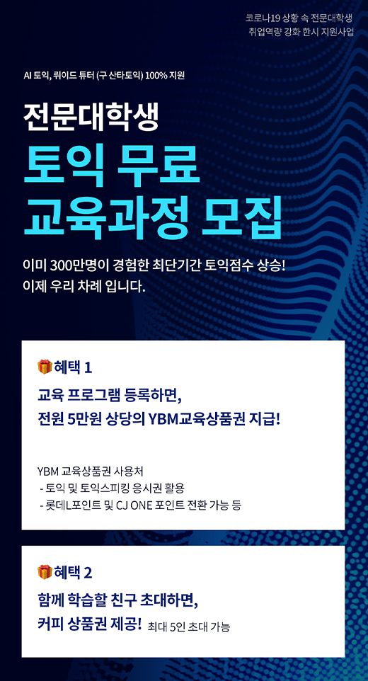 - 프로그램 등록 시 5만원 상당의 YBM교육상품권 지급