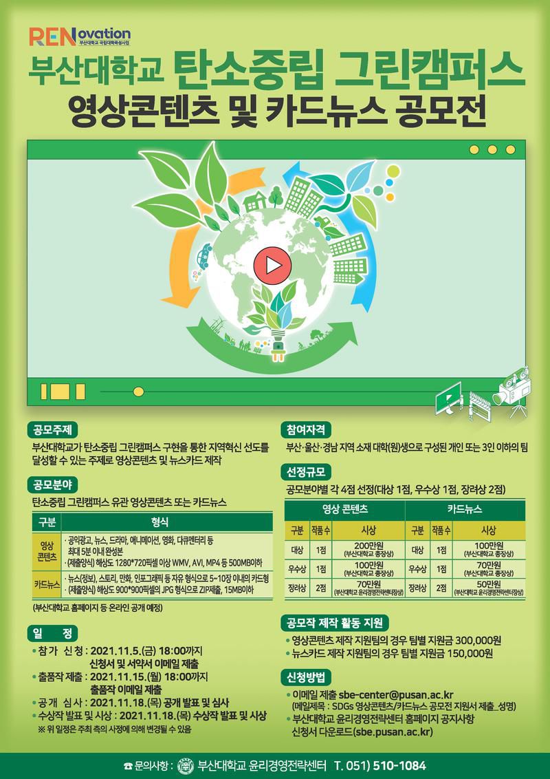 - 부산대학교가 탄소중립 그린캠퍼스 구현을 통한 지역혁신 선도를 달성할 수 있는 주제로 영상콘텐츠 및 뉴스카드 제작