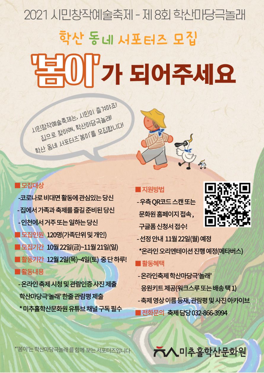 - 미추홀학산문화원 홈페이지 - 공지사항 - [학산 동네 서포터즈 '봄이' 모집] 글 참고