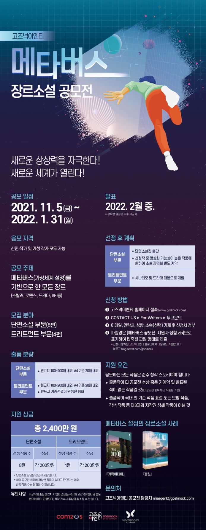 2021 고즈넉이엔티 메타버스 장르소설 공모전