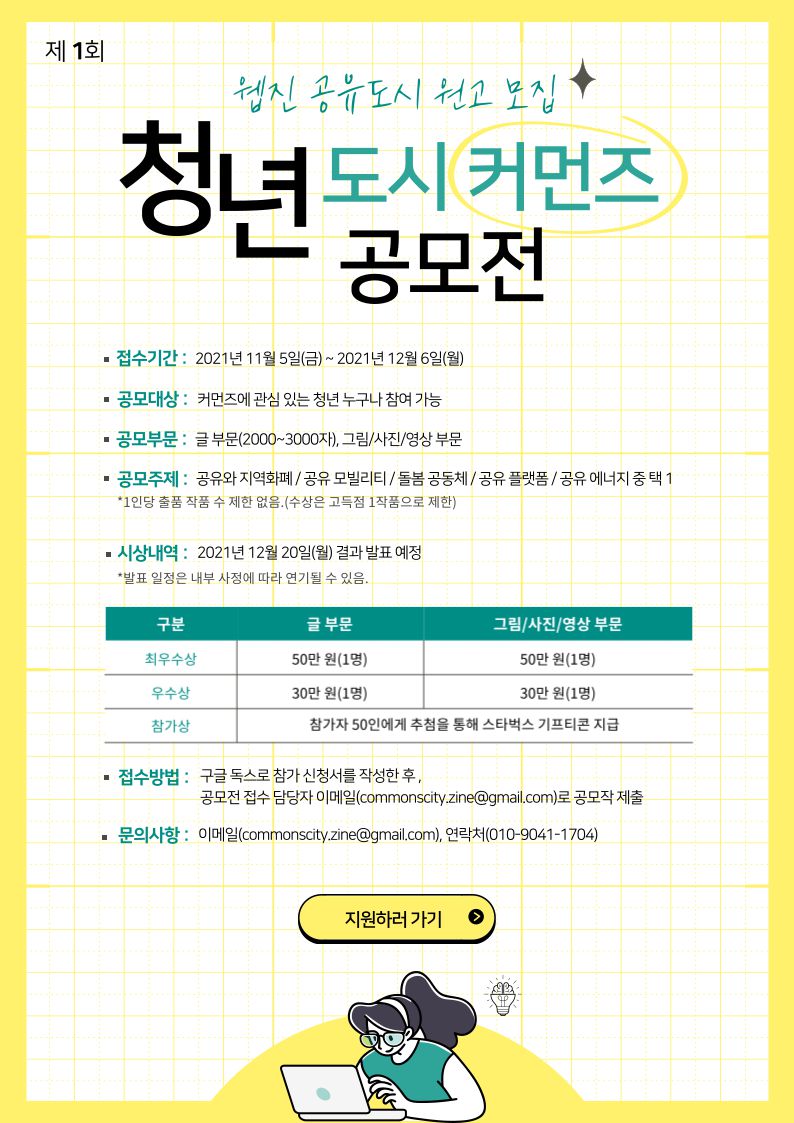 ※ 이메일(commonscity.zine@gmail.com)로 1월 7일(월)까지 제출