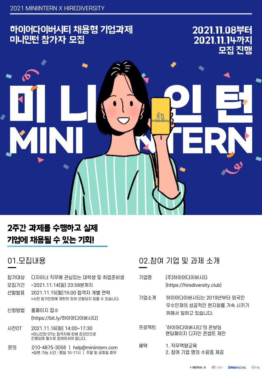 [미니인턴X하이어다이버시티]웹디자이너 채용연계형 온라인인턴십(~11/14)
