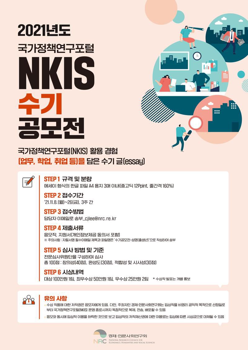 - “국가정책연구포털(NKIS)에 대한 활용 성과를 공유·홍보하기 위한 수기 공모전”