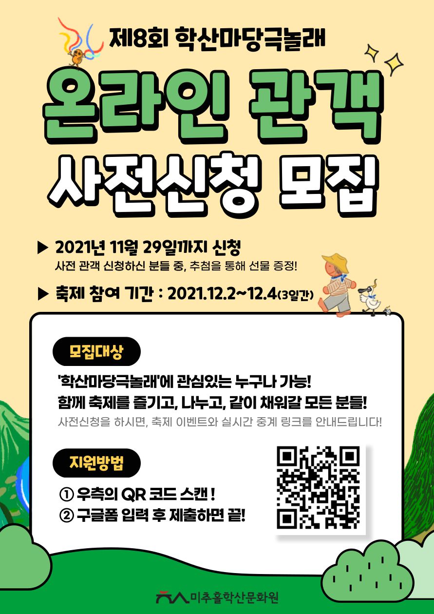 시민이 주인공이 되는 축제! '학산마당극놀래' 온라인 관객 사전모집 신청을 받습니다!