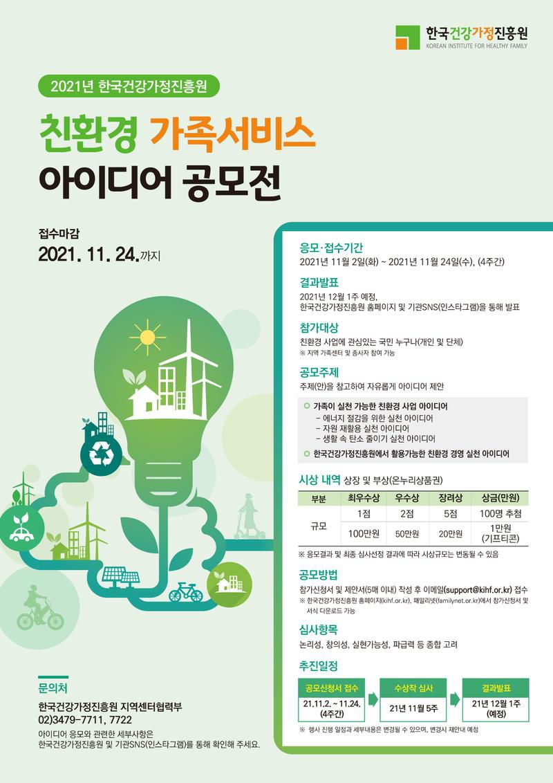 <2021년 한국건강가정진흥원 친환경 가족서비스 아이디어 공모전 >