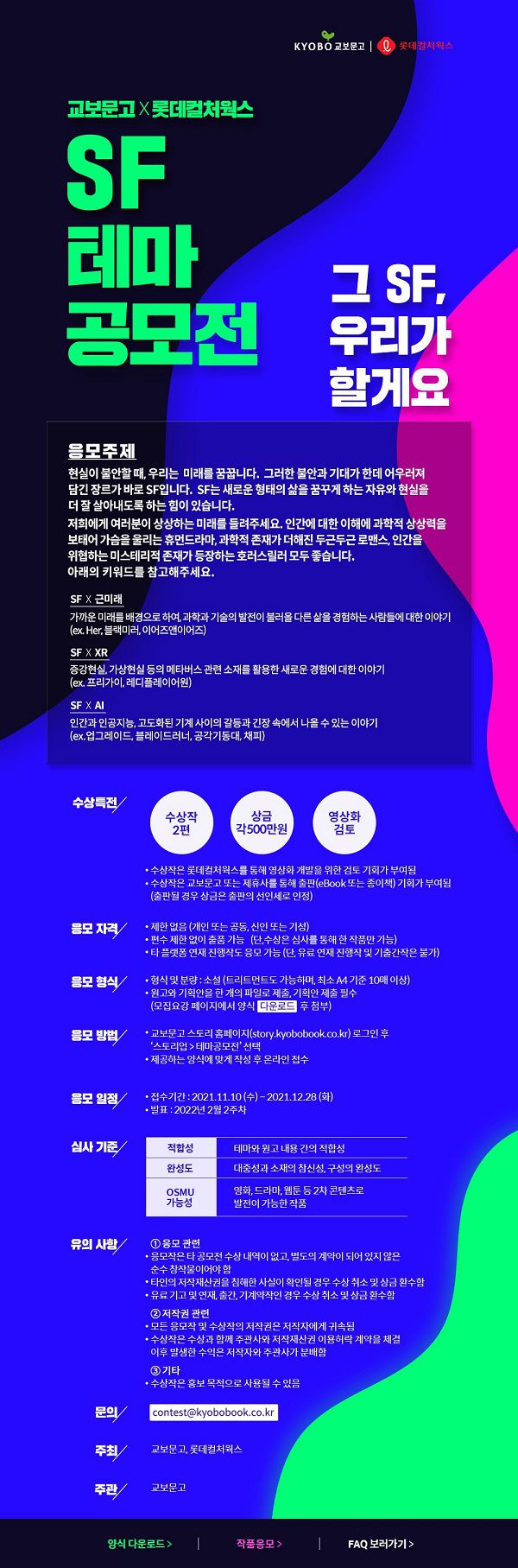 * 수상작은 교보문고 또는 제휴사를 통해 출판(E-book 또는 종이책) 기회가 부여됨