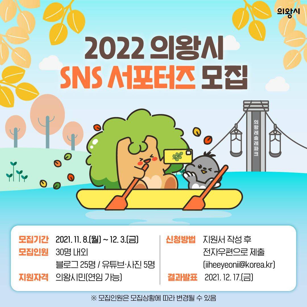시 대표 SNS 운영에 도움을 줄 2022년 의왕시 SNS 서포터즈를 모집합니다.
