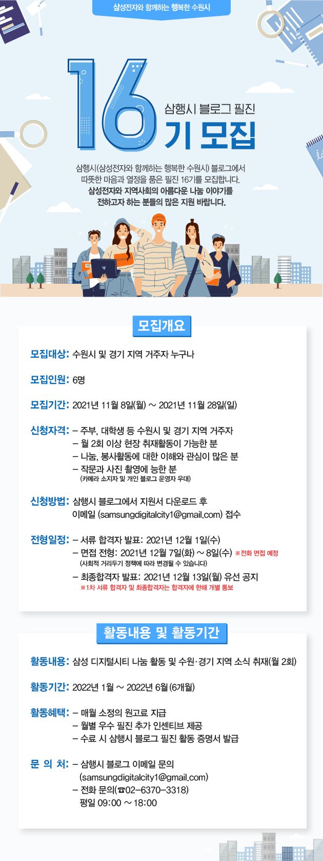 삼행시(삼성전자와 함께하는 행복한 수원시) 블로그에서 따뜻한 마음과 열정을 품은 필진 16기를 모집합니다.
