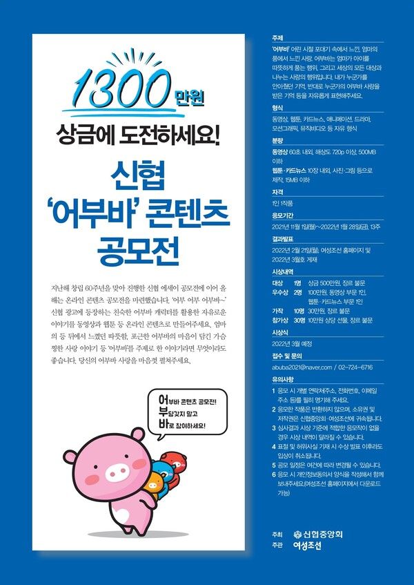 ② 응모한 작품은 반환하지 않으며, 소유권 및 저작권은 신협중앙회·여성조선에 귀속됩니다.