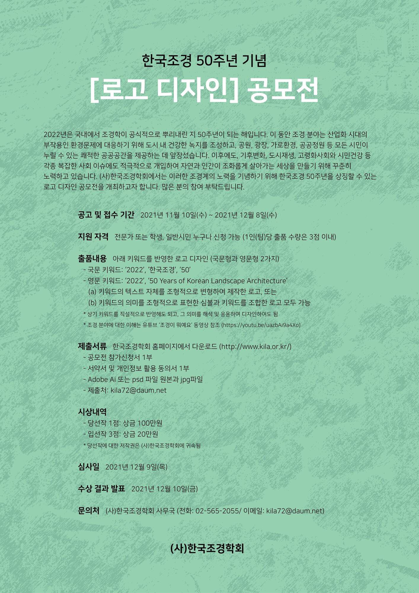 -제출처: kila72@daum.net (이메일 발송제목에 [한국조경 50 기념로고] 명기)