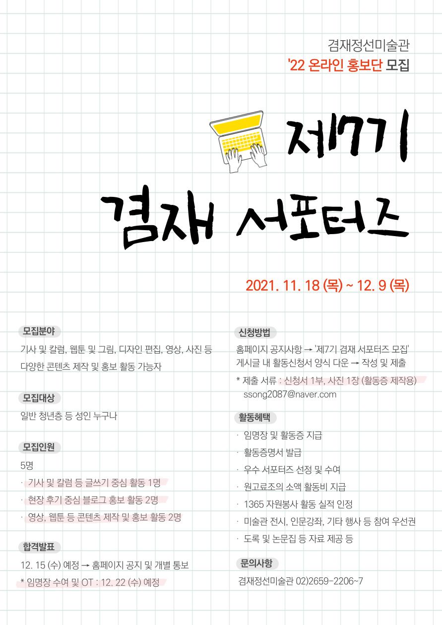 - (첨부파일) 제7기 겸재 서포터즈 지원신청서 양식 다운 → 작성 및 제출
