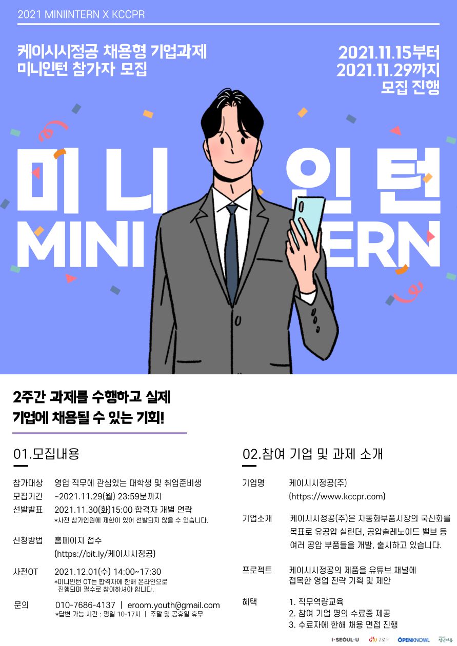 [미니인턴X케이시시정공]영업직무 채용연계형 온라인인턴십(~11/29)