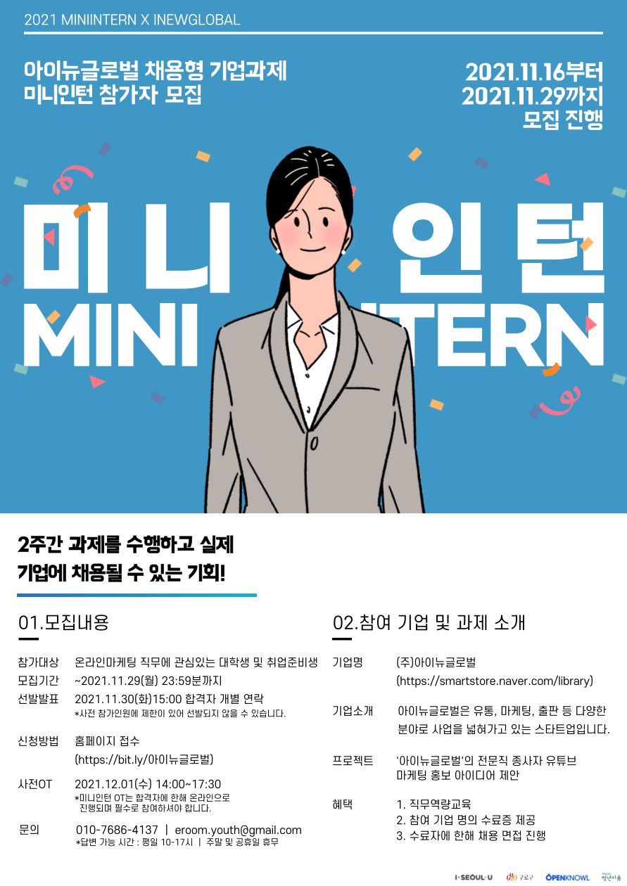 [미니인턴X아이뉴글로벌]마케터 스펙쌓고 취업까지! 채용연계형 온라인인턴십(~11/29)