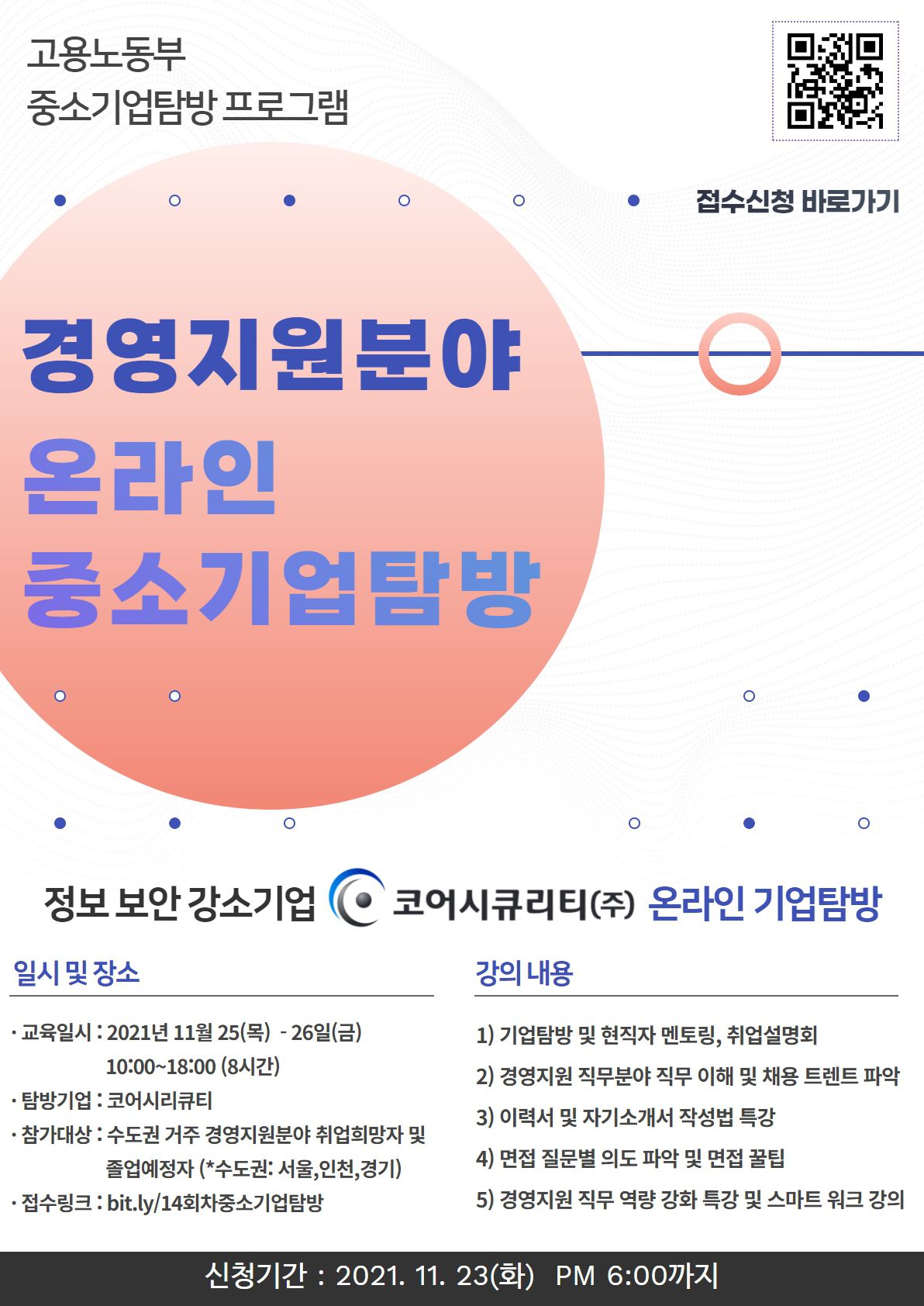 [고용노동부] 경영지원 직무 분야 중소기업탐방 프로그램 참여자 모집