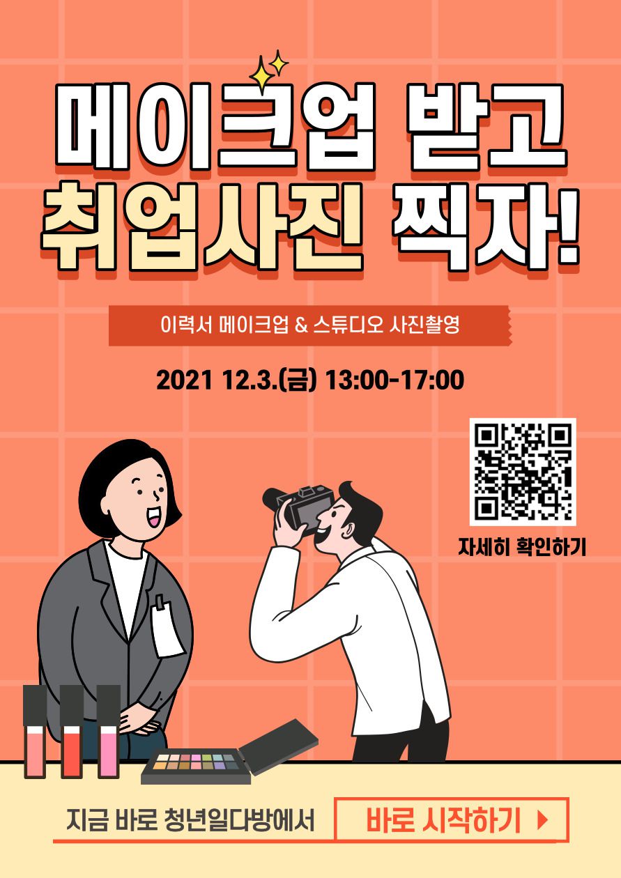 청년일다방 무료 이력서 사진촬영, '메이크업 받고 취업사진 찍자!'에 오신 여러분을 환영합니다!