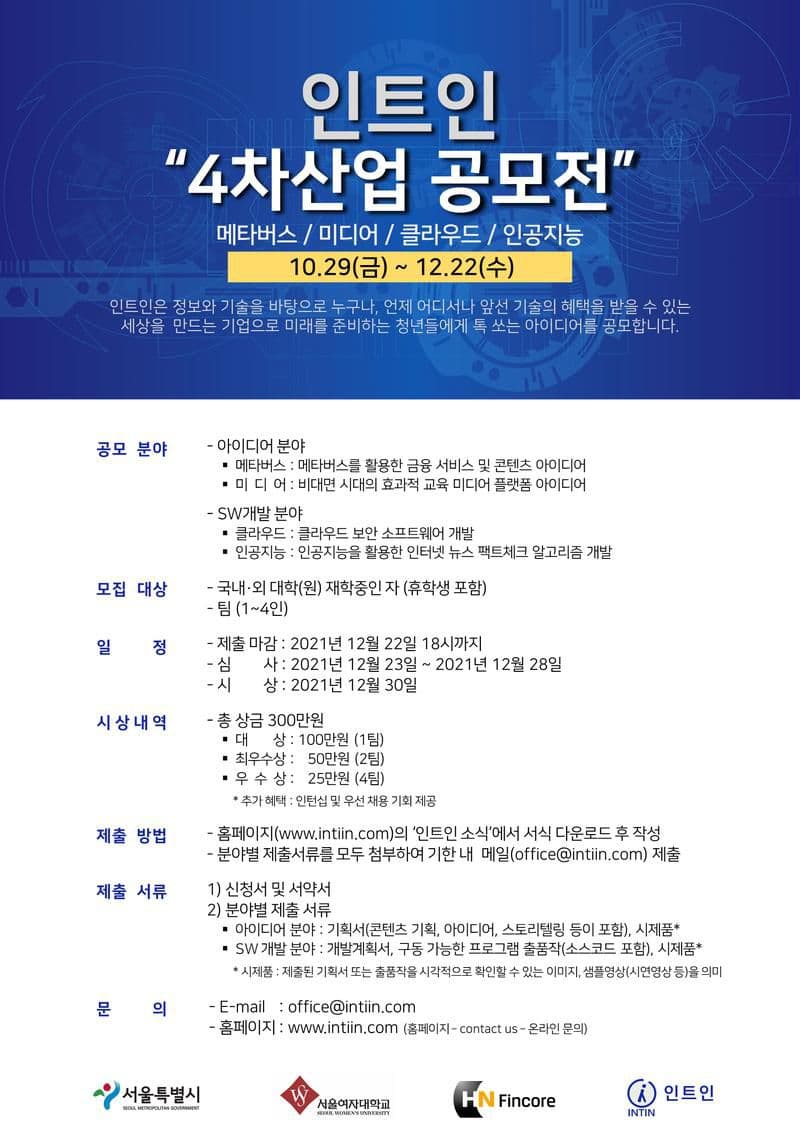 모든 제출 서류는 하나의 압축파일(.zip 등)로 통합하여 12월 22일 18시까지 메일(office@intiin.com)으로 제출 합니다.