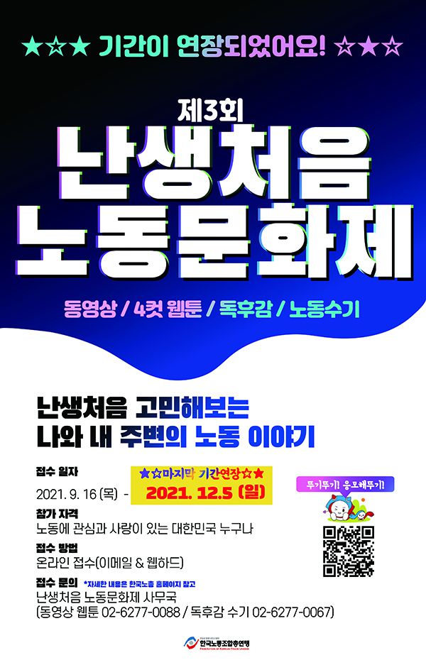 - 결과 발표: 2021.12.10. (금) 예정 * 개별연락 및 한국노총 홈페이지 게시 예정