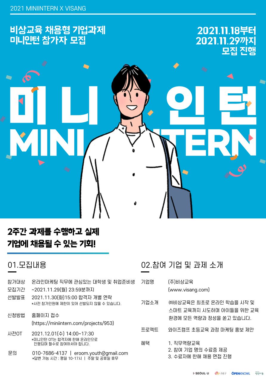 *본 과제형 미니인턴 참가시 사전OT 참가는 필수 사항입니다.
