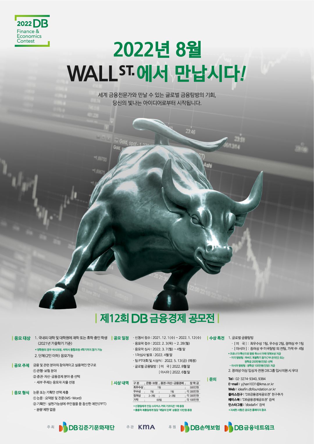 올해로 열두번째를 맞는 DB 금융경제 공모전에서는 멋진 금융인으로 성장할 대학생 여러분의 도전을 기다리고 있습니다.