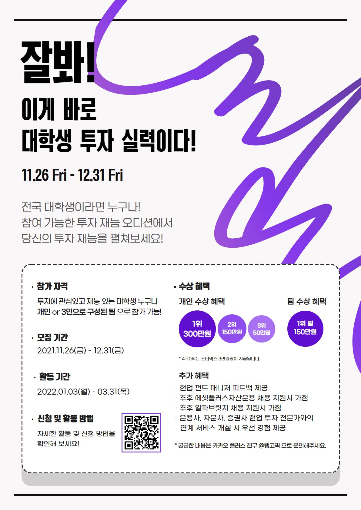 세상에 없던 투자 재능 발굴 프로젝트. 투자에 관심 있는 대학생이라면 누구나 !