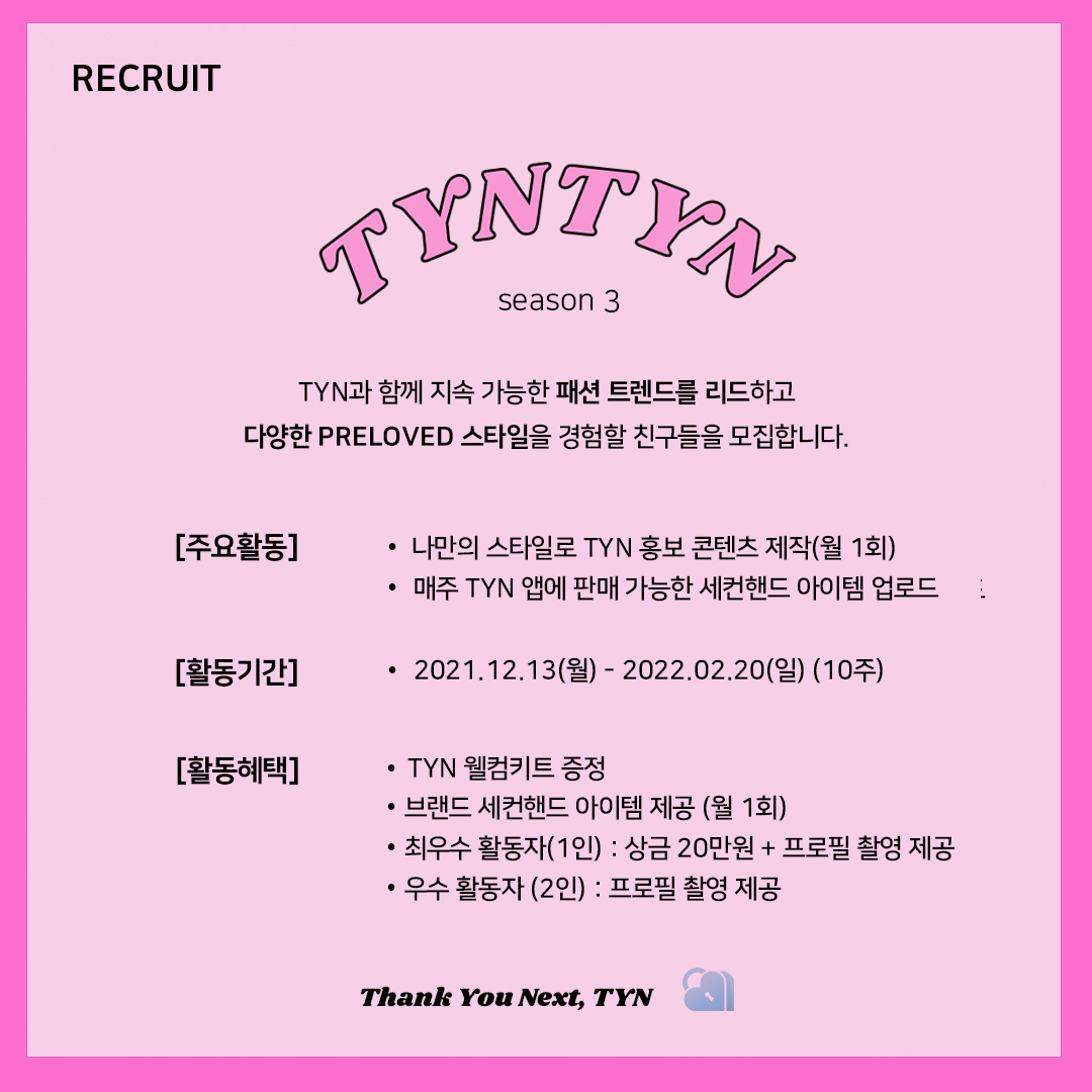 - 매주 TYN 앱에 판매 가능한 세컨핸드 아이템 업로드