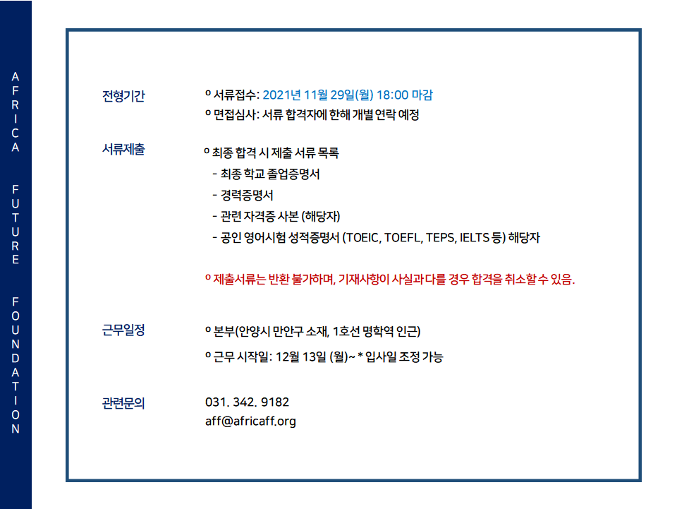 **지원서 다운로드 후, 이메일로 제출해주세요. (aff@africaff.org)