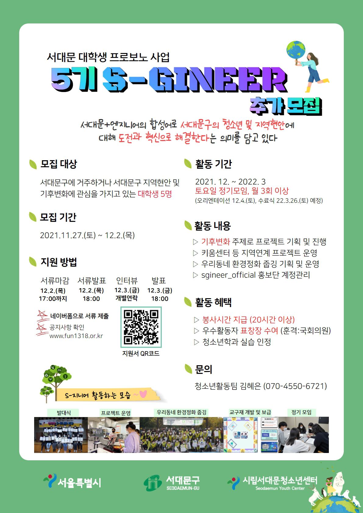 🌏모집대상 : 서대문구에 거주하거나 서대문구 지역현안 및 기후변화에 관심을 가지고 있는 대학생 5명