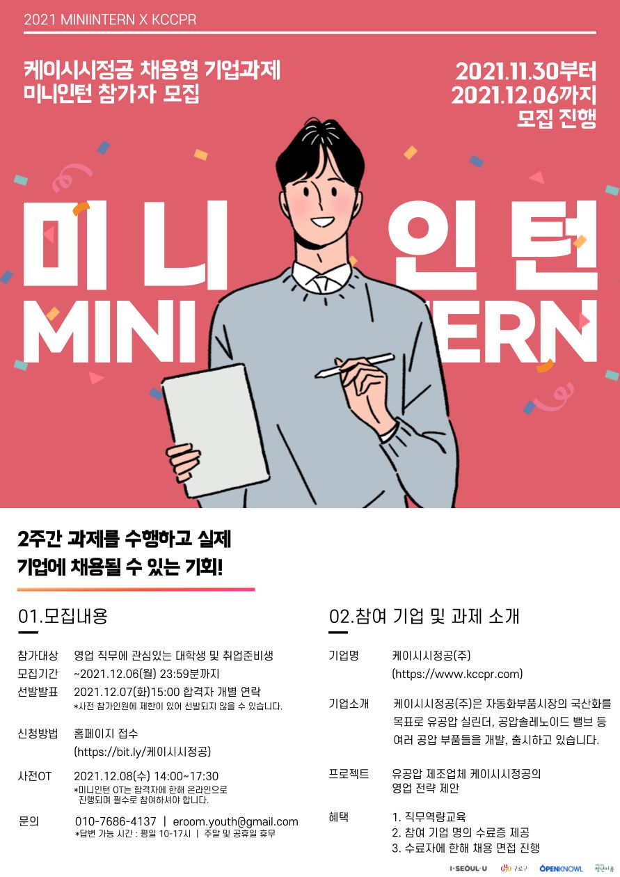 [미니인턴X케이시시정공]국내, 해외영업직무 채용연계형 온라인인턴십(~12/06)