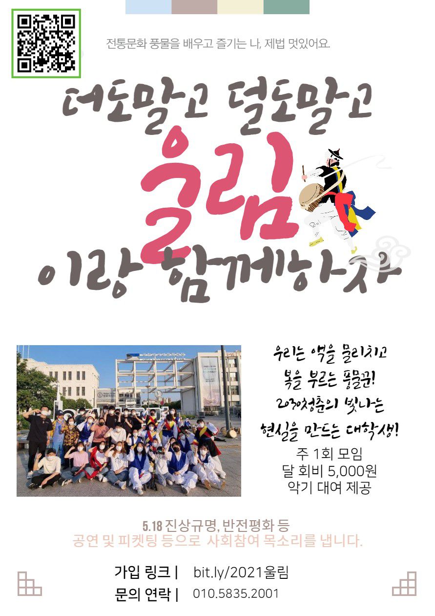 🥁광주지역 대학생 풍물동아리 <울림> 에서 하반기 신입회원을 모집합니다🥁
