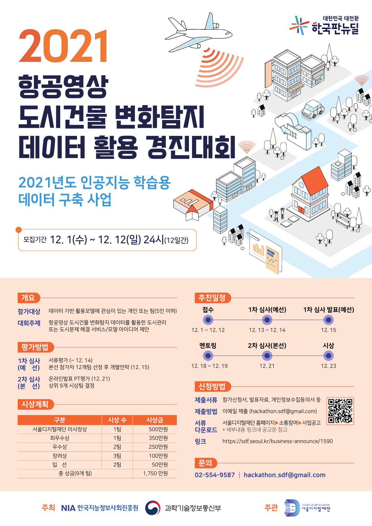 - 대회주제: 항공영상 도시건물 변화탐지 데이터를 활용한 도시관리 또는 도시문제 해결 서비스/모델 아이디어 제안