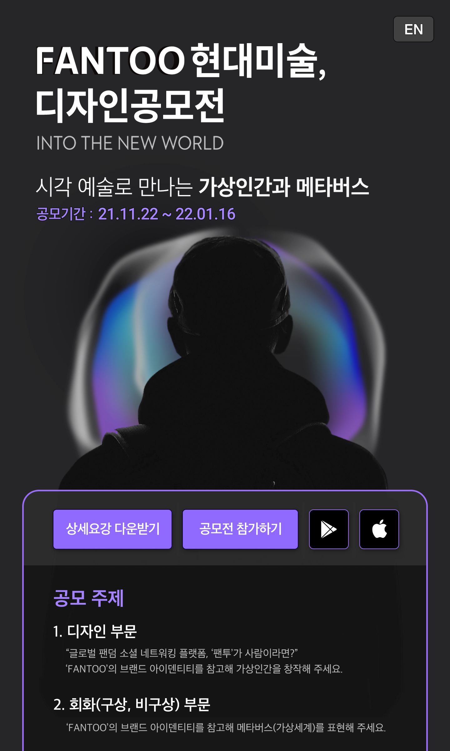 - 발표: 2022-01-24(월) ‘팬투’ 앱 & 자사 홈페이지 게시 및 수상자 개별통지