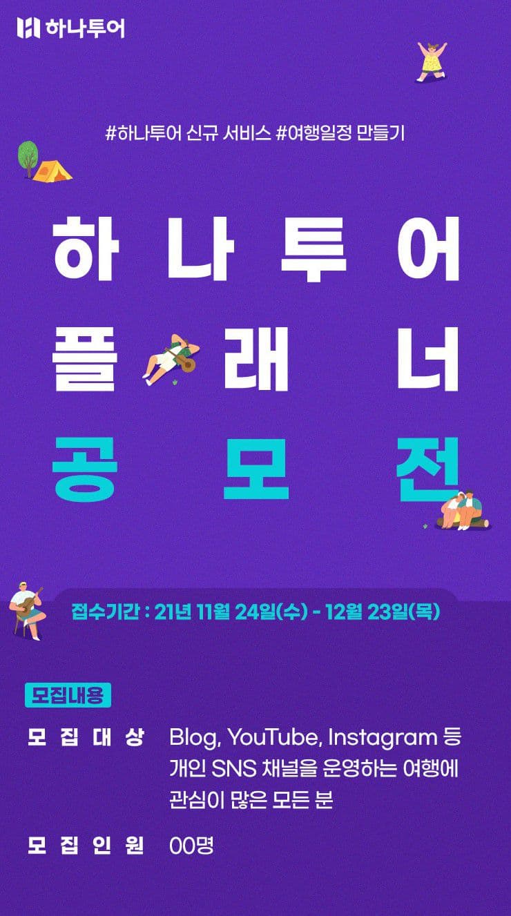 하나투어 앱에서 신규 오픈 한 여행일정 만들기 서비스 ‘플래너’를 체험하고 홍보하는 공모전입니다.