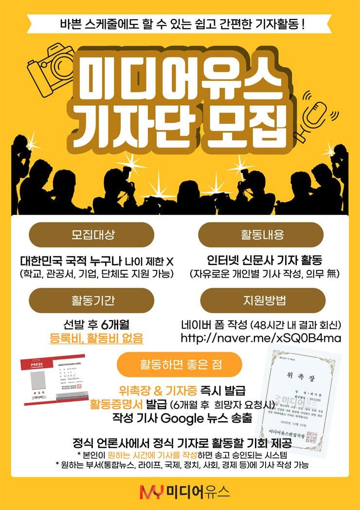 10만명이 보는, 젊은 언론 ‘미디어유스’가 기자로 활동하실 회원을 모집합니다.