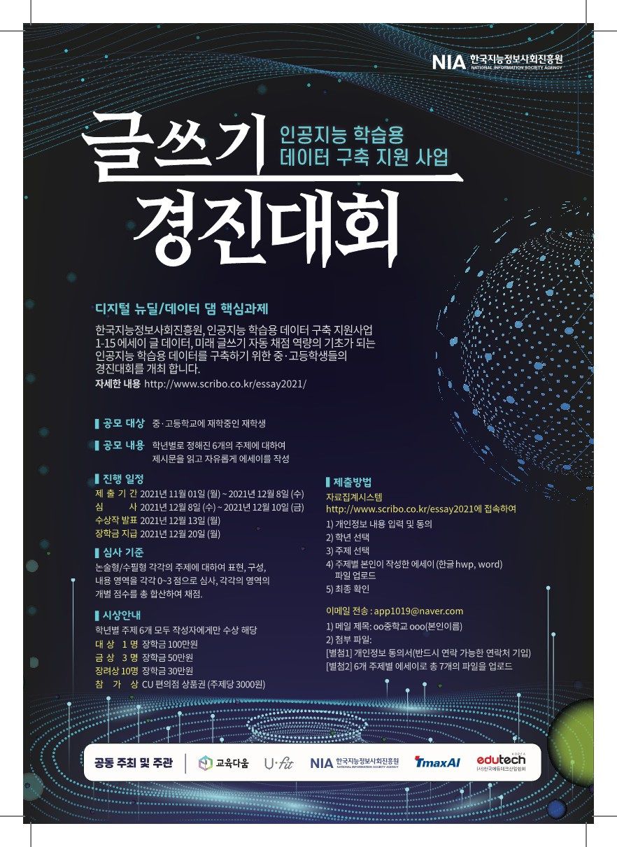 - 금상 3명 : 장학금 50만원