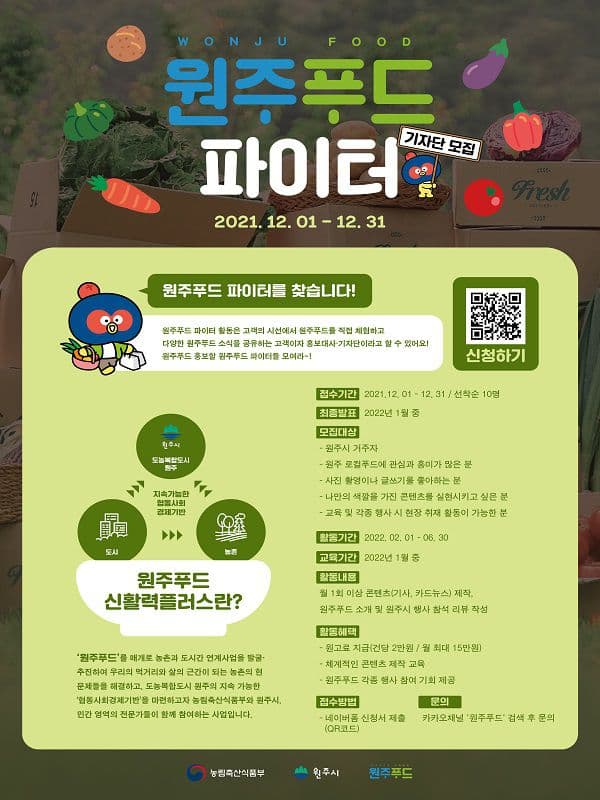 2022년 원주푸드 기자단(원주푸드 파이터) 모집