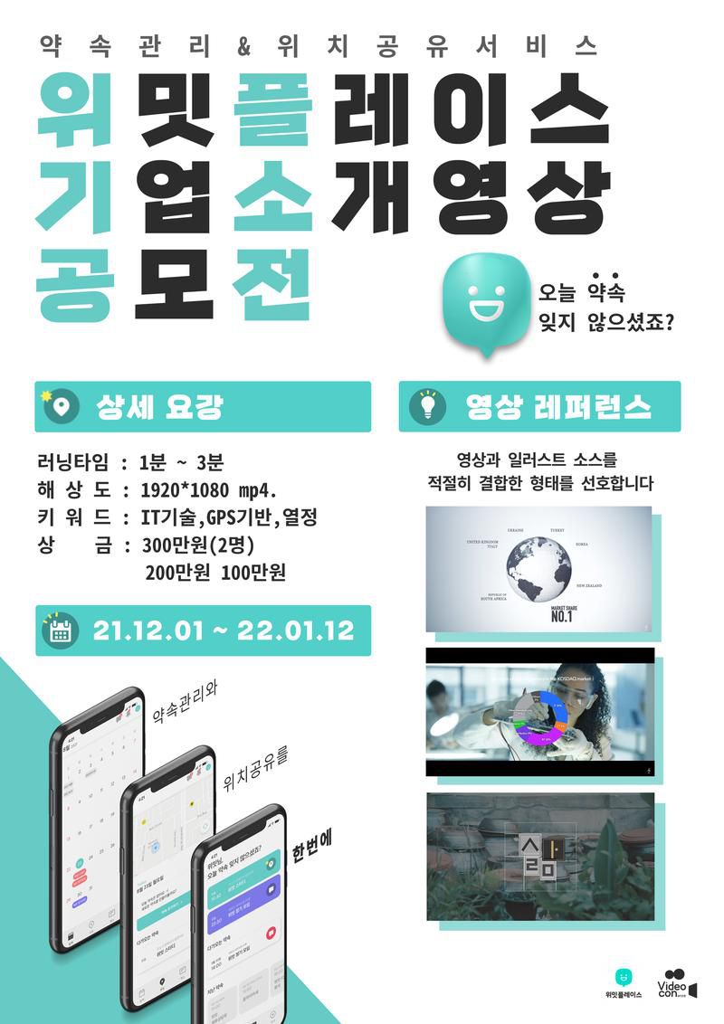 GPS를 기반으로 위치 공유를 가능하게 하고 약속 관리를 도와주는 위밋플레이스에서, 기업의 이미지를 나타낼 수 있는 기업 소개 영상을 만들고자 합니다.
