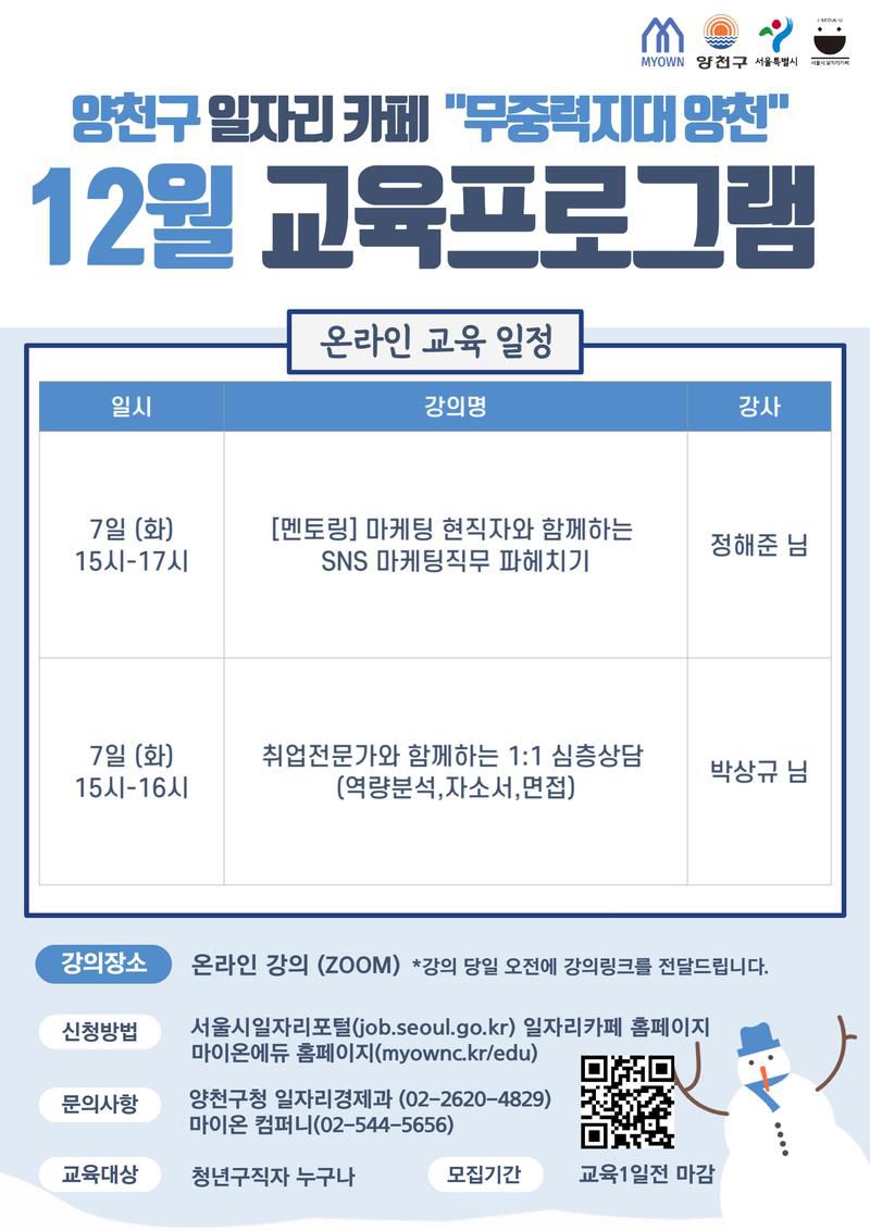 👉 문의사항: 1) 양천구청 일자리경제과 02-2620-4829 2) 마이온 컴퍼니 02-544-5656