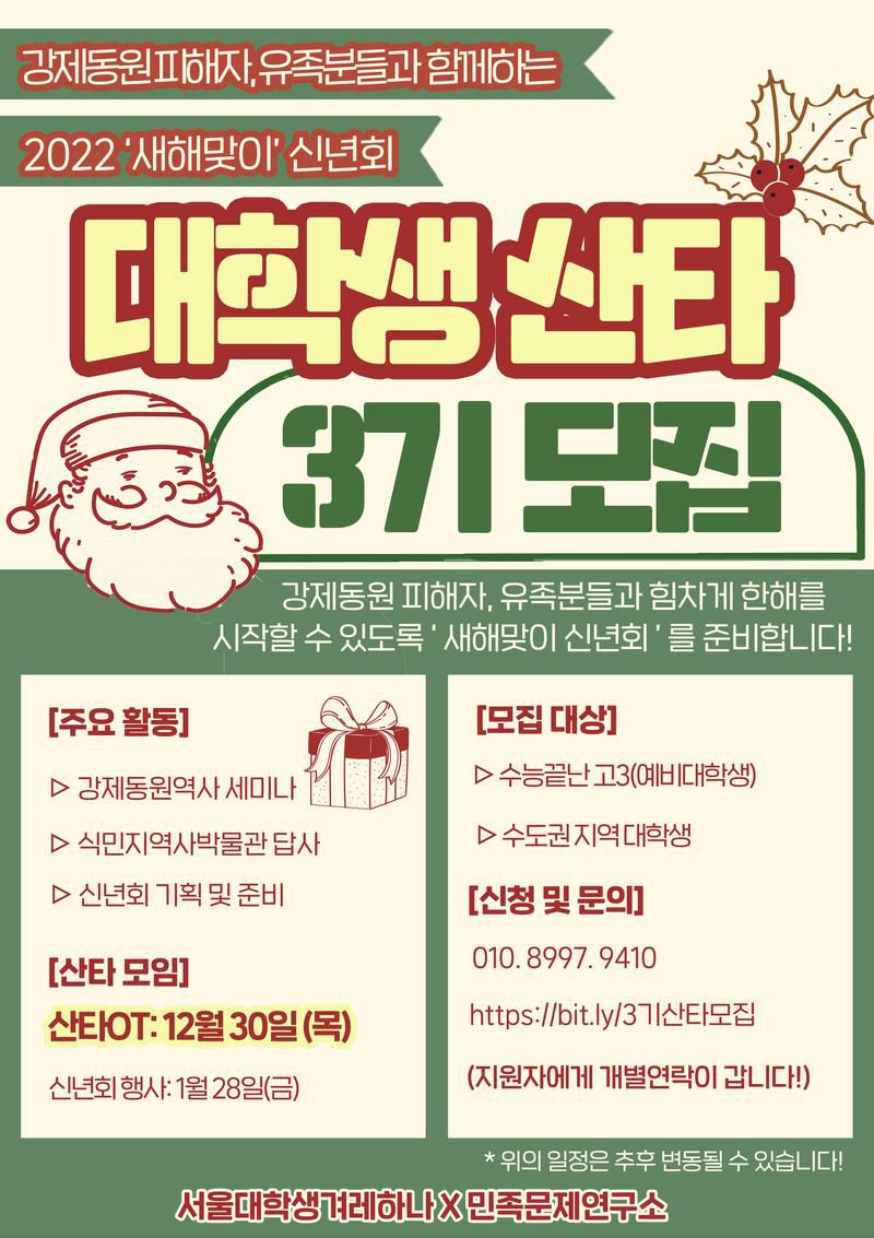 "강제동원피해자, 유족분들과 함께하는” 🟠🟠고3 & 대학생 산타 3기 모집🟠🟠