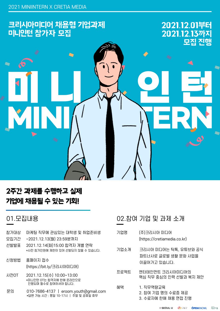 [미니인턴X크리시아미디어]엔터테인먼트 인사, 총무직무 채용연계 프로그램(~12/13)