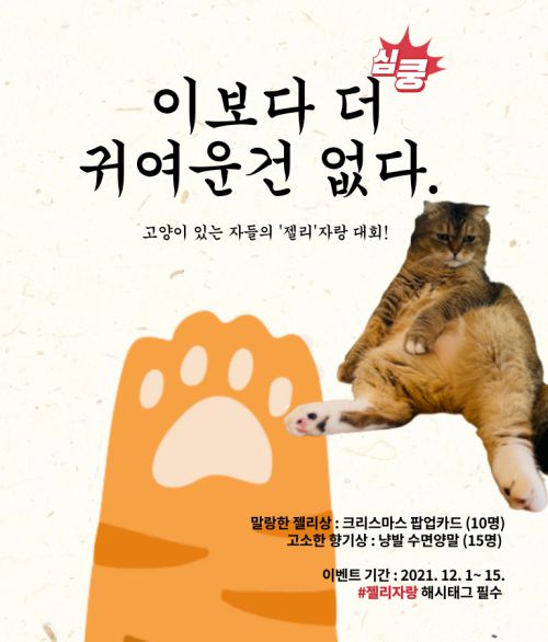 말랑한 젤리상 : '너만 없는 고양이'가 디자인한 크리스마스 카드 (10명) 고소한 향기상 : 냥발 수면양말 (10명)