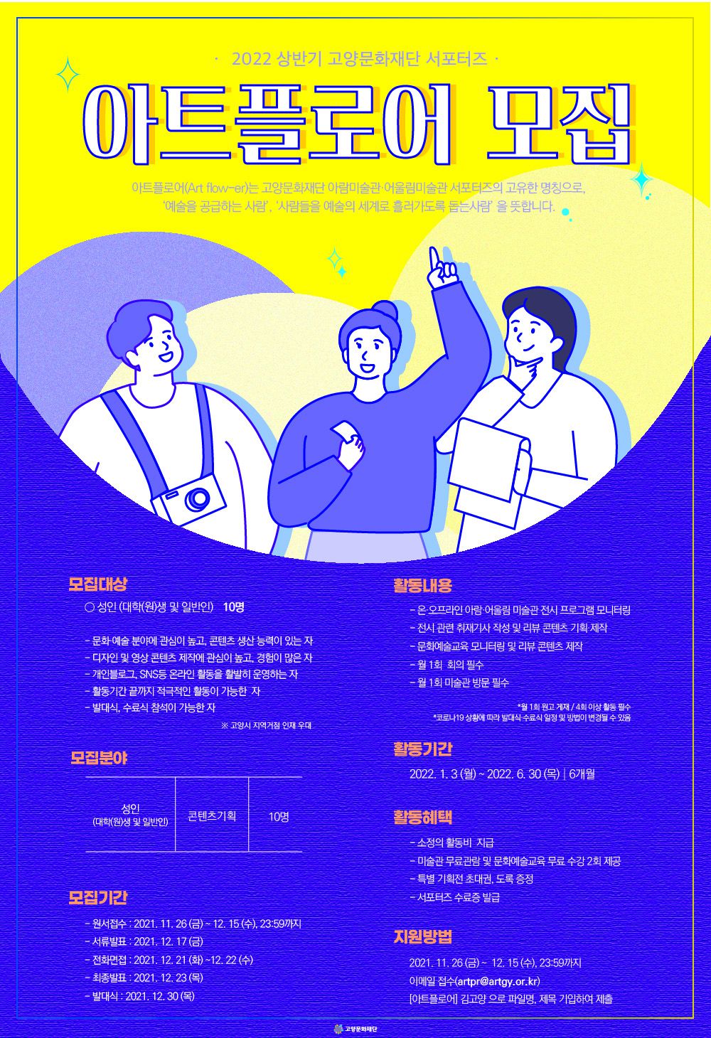2022 고양문화재단 상반기 미술관 서포터즈 ‘Art flow-er’ 모집 안내입니다.