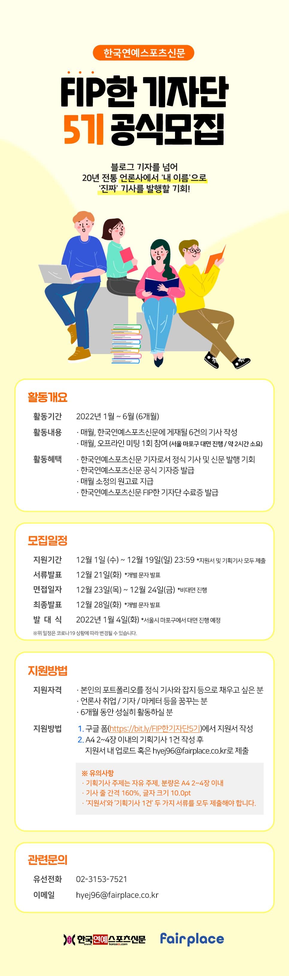 ① 구글 링크( https://bit.ly/FIP한기자단5기 )에서 지원서 작성