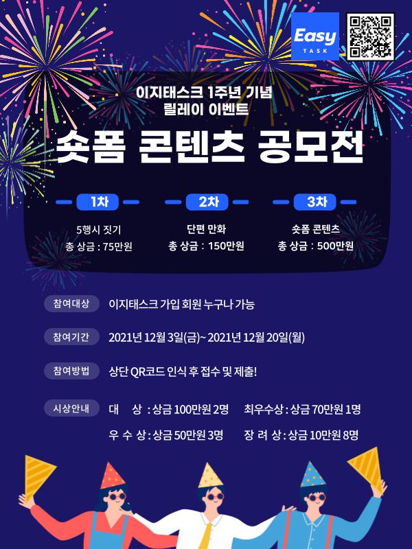 - 제출한 공모작은 이지태스크 내부 및 외부 마케팅 자료로 활용될 수 있습니다.