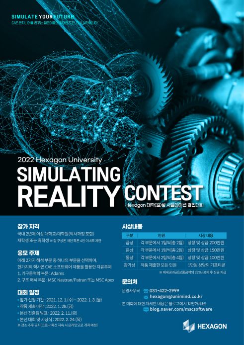 Hexagon(구 MSC Software)은 여러분이 그 동안 쌓아 온 실력과 역량을 마음껏 펼칠 수 있도록 제9회 ‘Simulating Reality Contest’를 개최합니다.