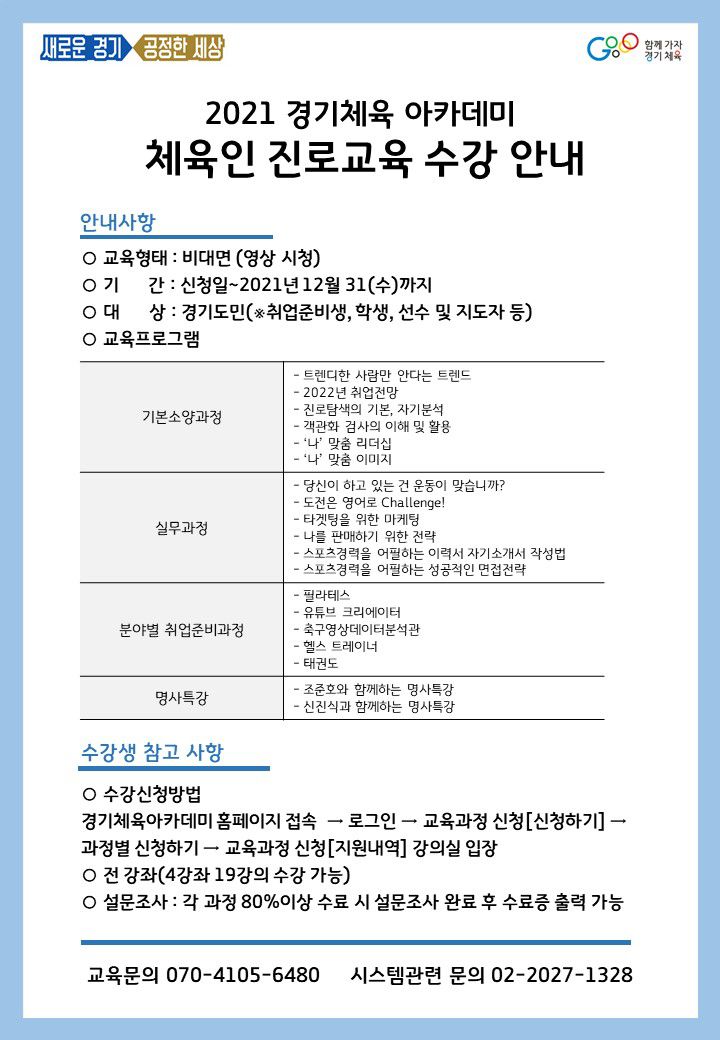 ‘ 2021 경기체육 아카데미 체육인 진로교육 수강안내 ‘