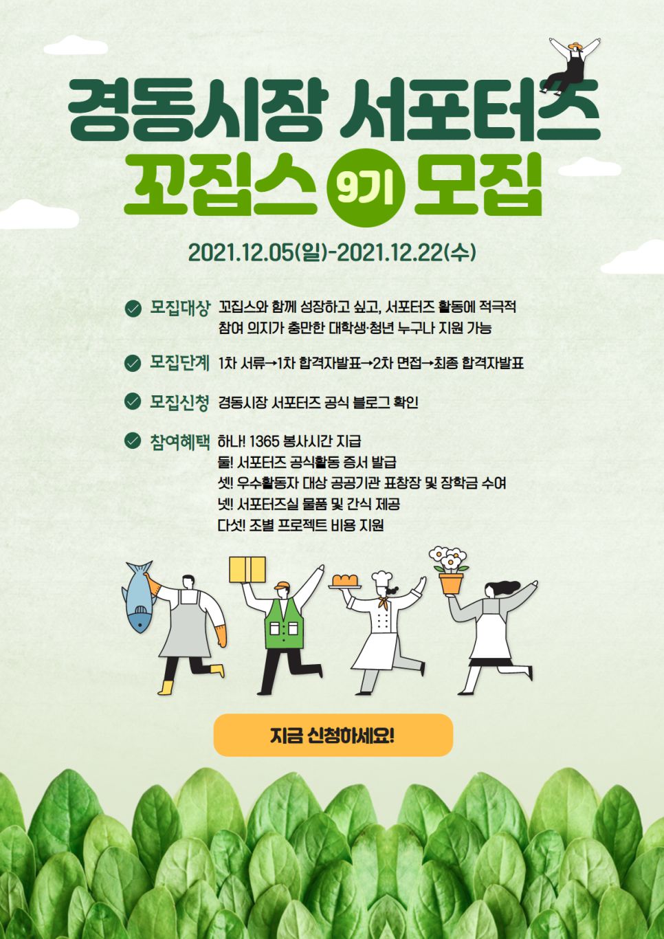 경동시장 서포터즈 꼬집스는 서울특별시 동대문구의 전통시장 ‘경동시장’과 지역공동체의 상생 및 활성화를 위해 만들어진 청년·대학생 봉사단이자 서포터즈입니다.