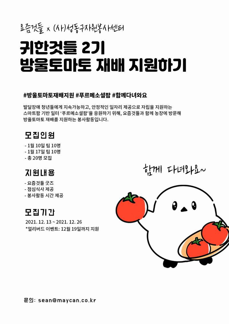발달장애 청년들에게 지속가능하고, 안정적인 일자리 제공으로 자립을 지원하는 스마트팜 기반 일터 푸르메소셜팜을 응원하기 위해, 요즘것들과 함께 농장에 방문해 방울토마토 재배를 지원하는 봉사활동